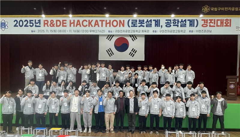 구미전자공업고등학교의 2025학년도 R&DE 해커톤(로봇설계,공학설계) 경진대회가 11월 15일부터 16일까지 무박 2일, 총 27시간의 일정으로 학교 체육관에서 성황리에 개최됐다.