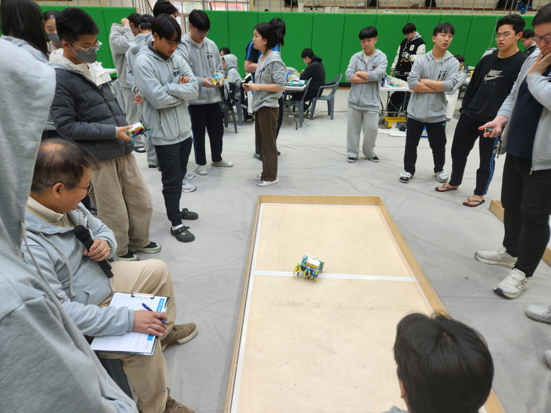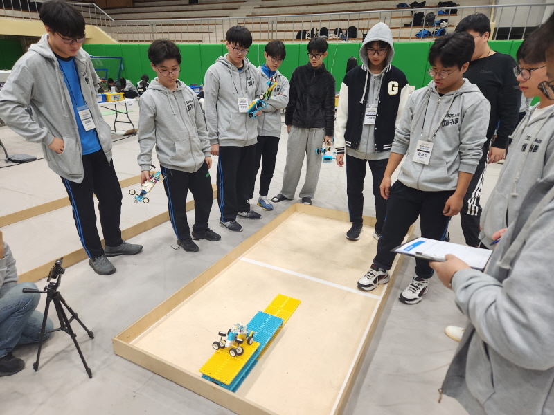 이 대회는 구미전자공업고등학교 전문교육부가 주최하고 ㈜핸즈온러닝이 주관했으며, 스마트 제조공정 핵심 기술인 AGV(Automatic Guided Vehicle)를 활용한 웨이퍼 이송 로봇 개발을 주제로 진행됐다.